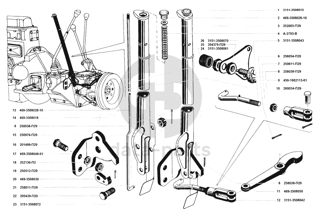 Привод механизма управления стояночным тормозом УАЗ 31514