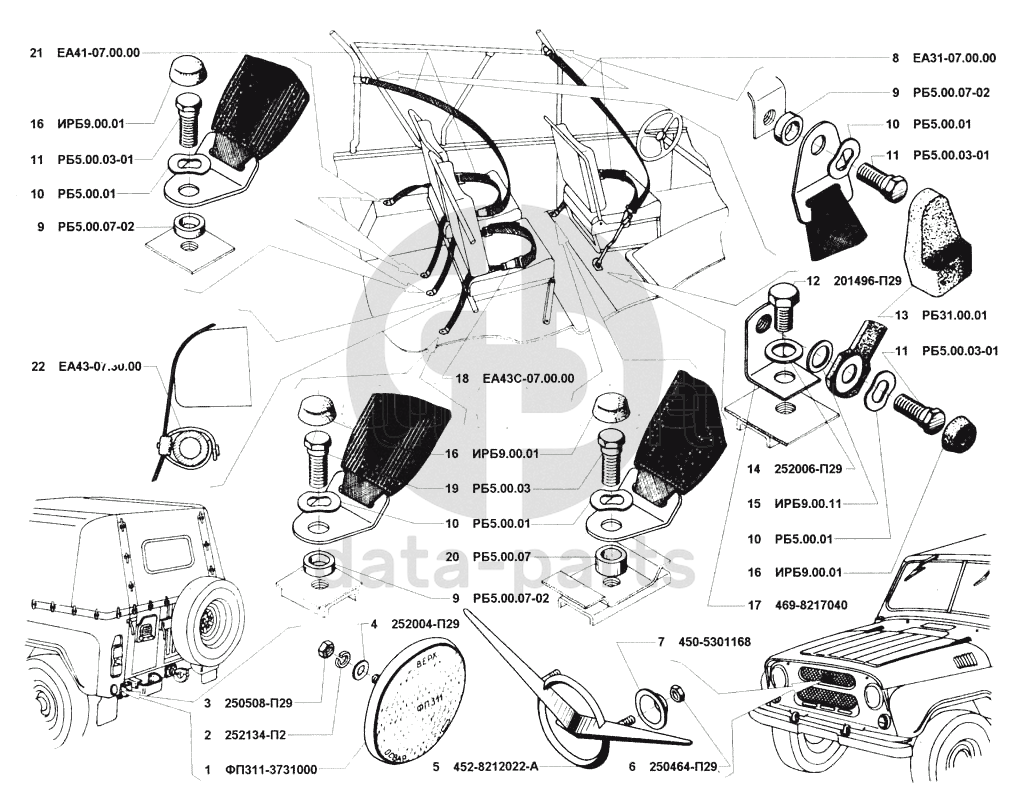 Отражатели света, орнаменты, ремни безопасности УАЗ 31519