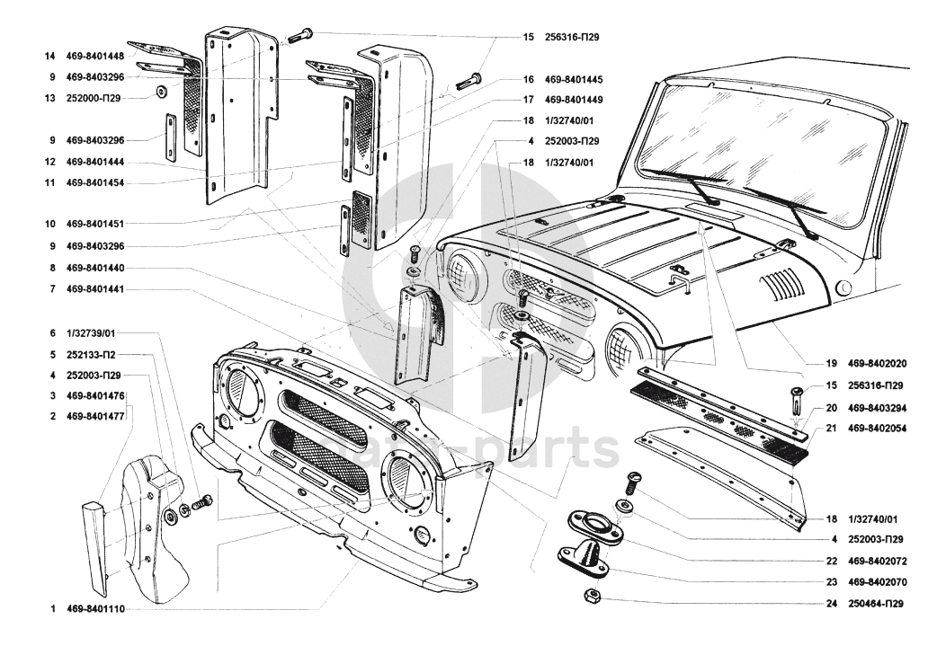 Надставка щитка облицовки радиатора правая (сварка) в сборе