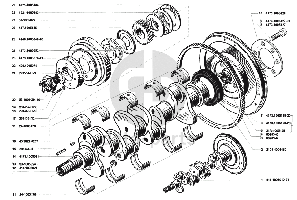 Вал коленчатый, маховик и сцепление в сборе