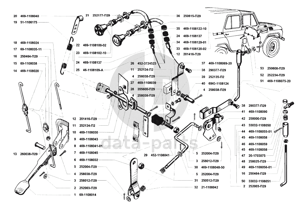 Привод управления дроссельной и воздушной заслонками УАЗ 31519