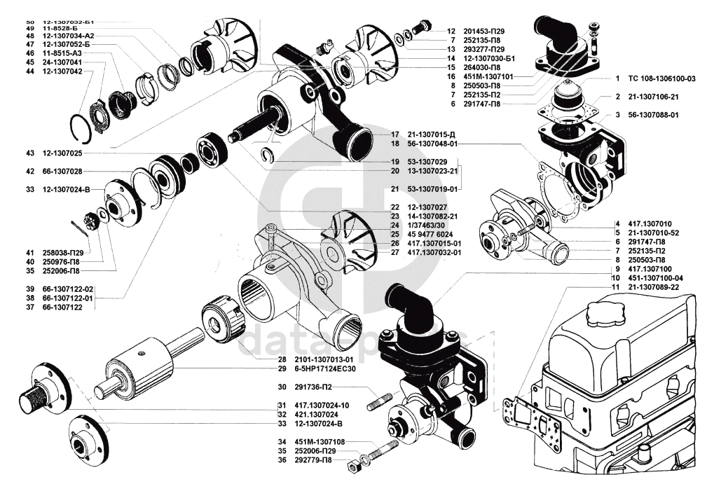Насос с кронштейном, выпускным патрубком и термостатом в сборе