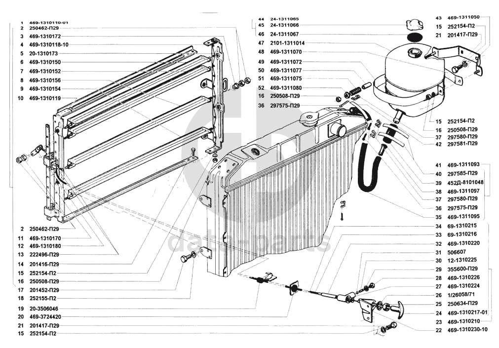 Жалюзи радиатора и привод, бачок расширительный УАЗ 31519