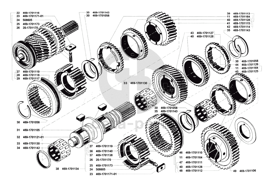 Шестерня 1-й передачи с кольцом синхронизатора в сборе
