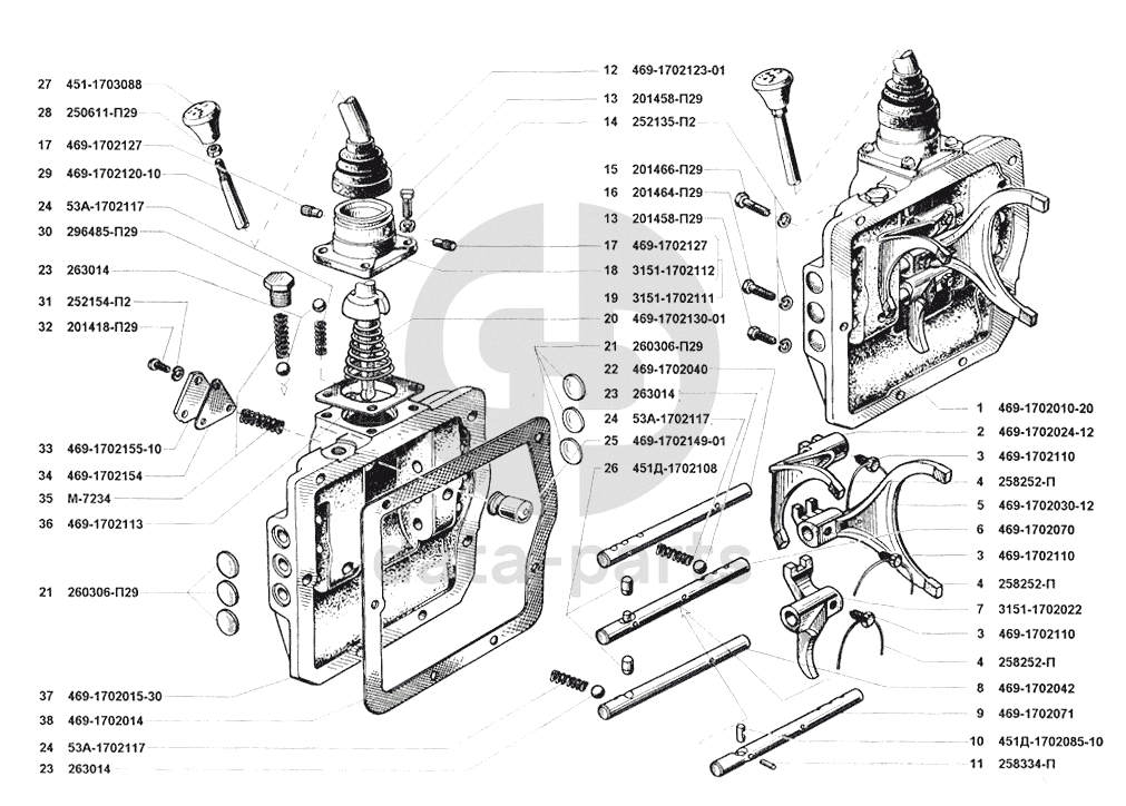 Шток вилки переключения 3-й и 4-й передач в сборе
