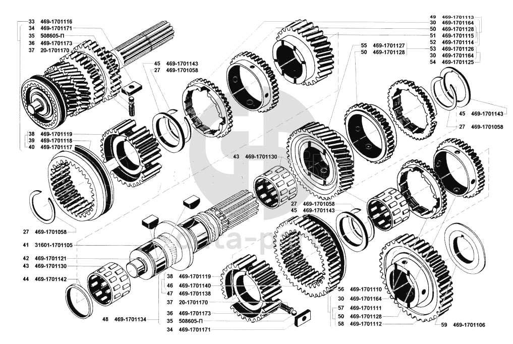 Шестерня 1-й передачи с кольцом синхронизатора в сборе