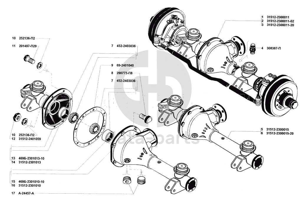 Мост передний ведущий в сборе, картер и кожухи полуосей переднего моста УАЗ 31519