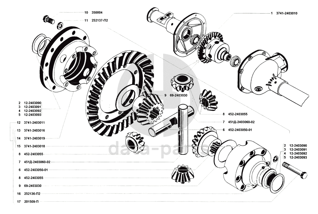 Дифференциал переднего моста с ведомой шестерней главной передачи
