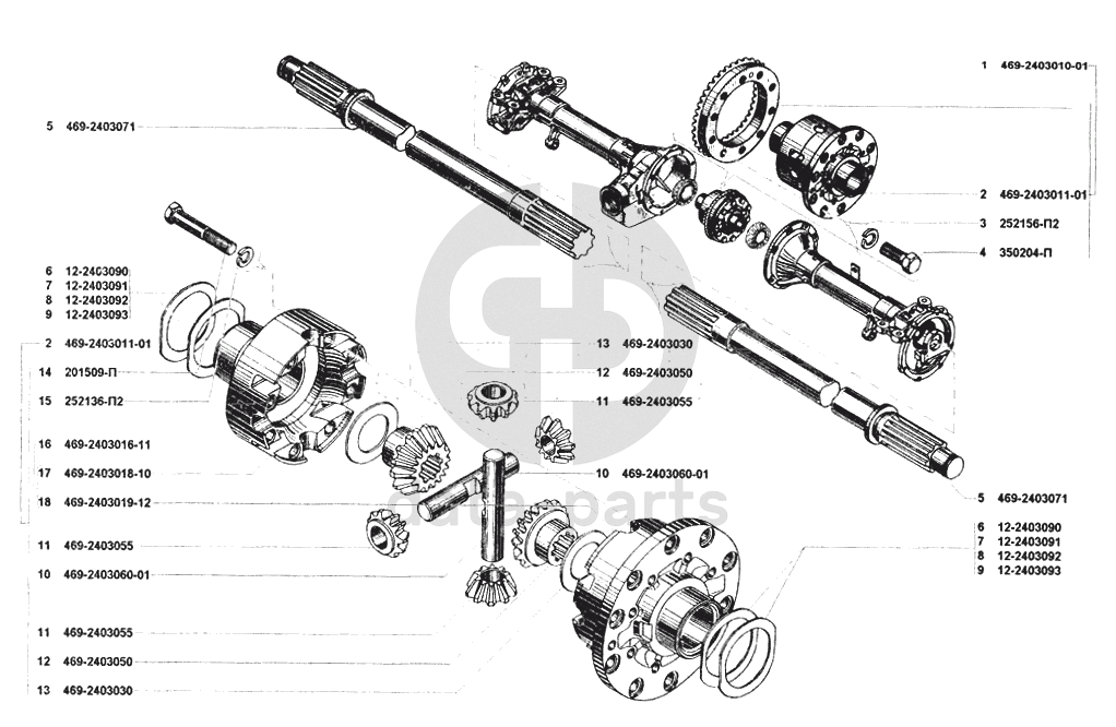Дифференциал и полуоси заднего моста УАЗ 31519
