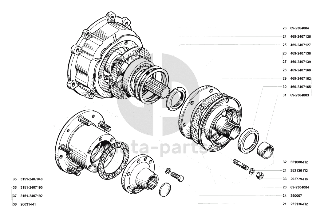 Фланец ведущий ступицы заднего колеса с заглушкой