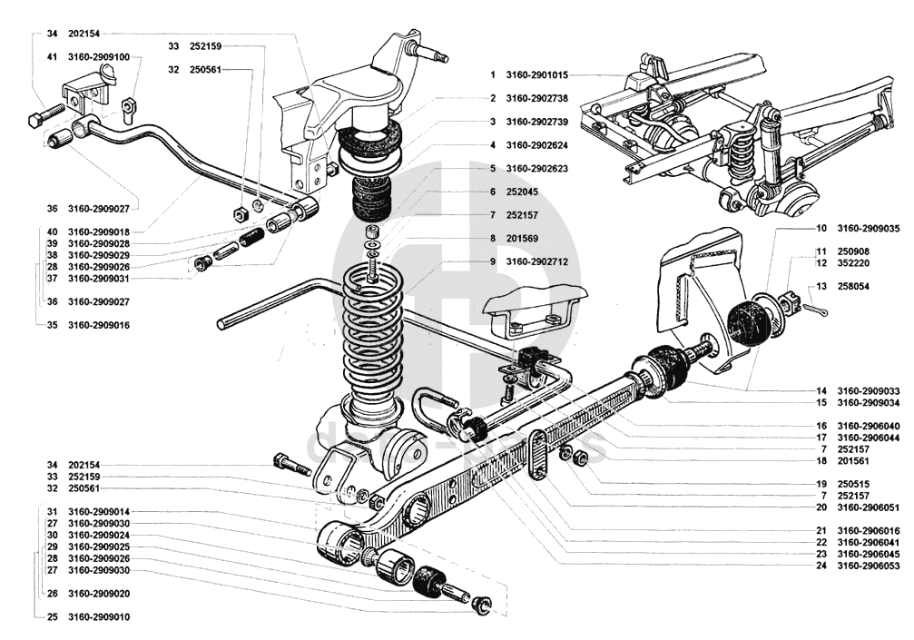Подвеска передняя в сборе, пружины передние, стабилизатор поперечной устойчивости и штанги реактивные передней подвески УАЗ 31519