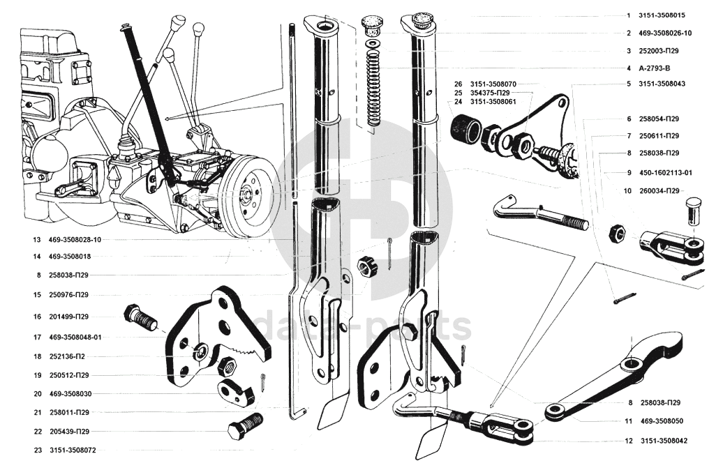 Привод механизма управления стояночным тормозом УАЗ 31519
