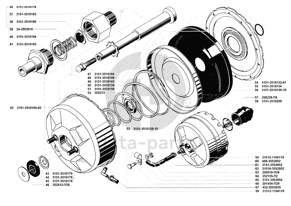 Усилитель вакуумный тормоза, трубопровод вакуумного усилителя УАЗ 31519