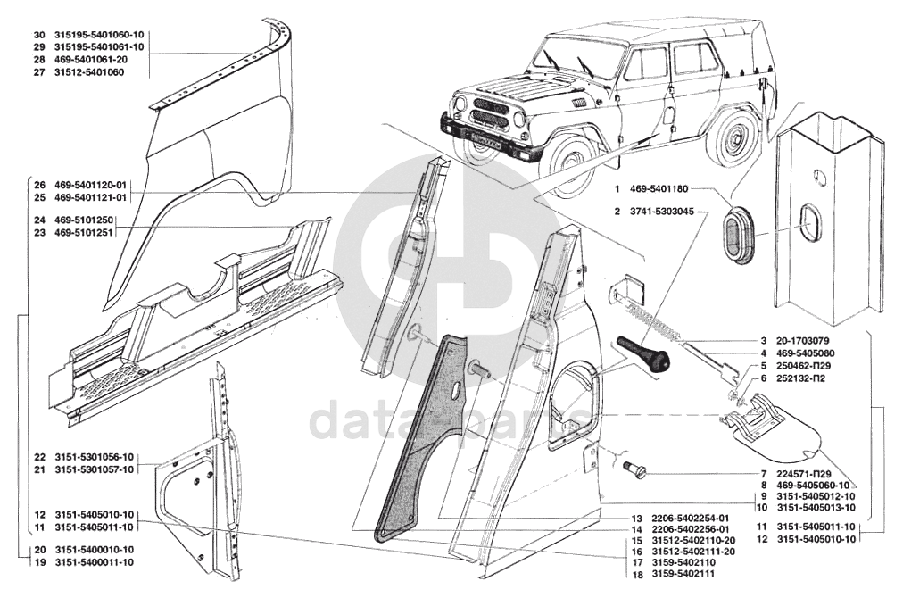 Боковина в сборе, боковина, обивка боковины, стойка центральная УАЗ 31519