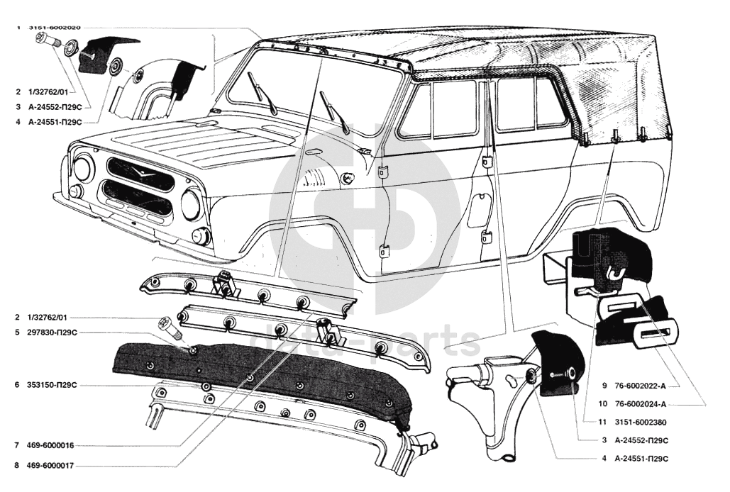 Тент в сборе УАЗ 31519