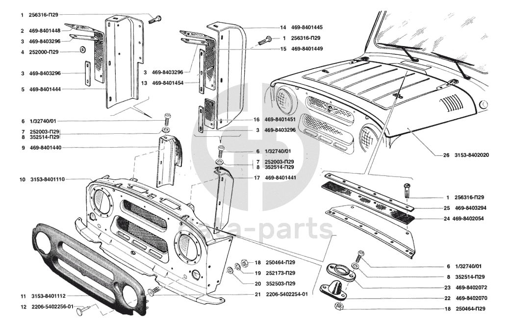Надставка щитка облицовки радиатора правая (сварка) в сборе