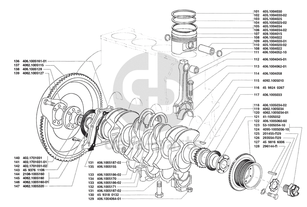 Поршень и шатун, вал коленчатый и маховик УАЗ 31519