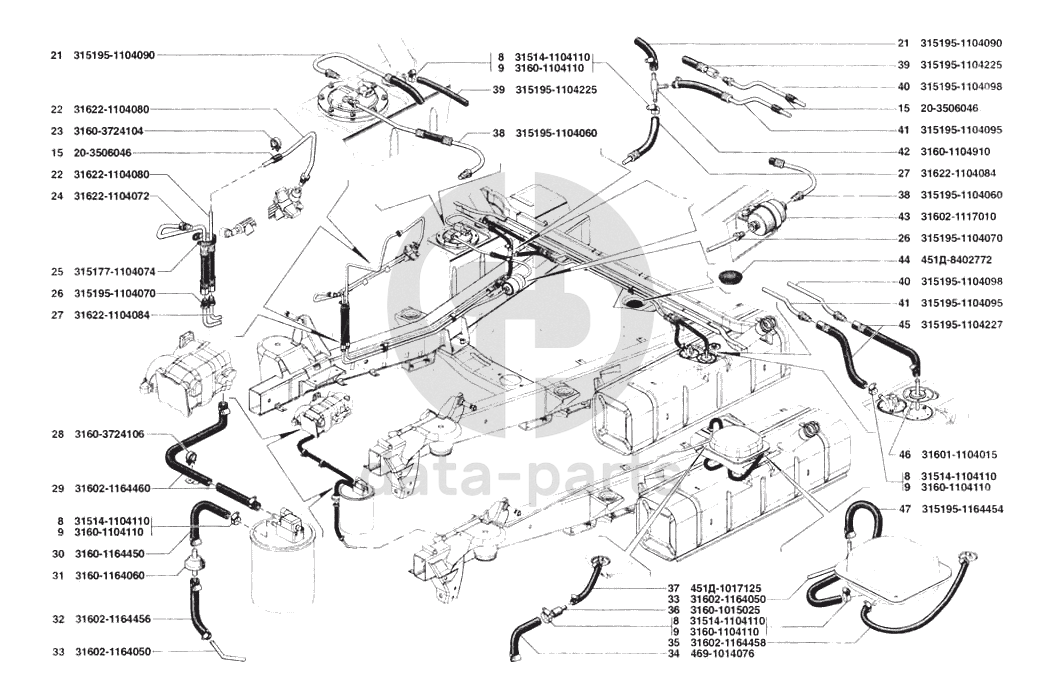 Трубопроводы топливные УАЗ 31519