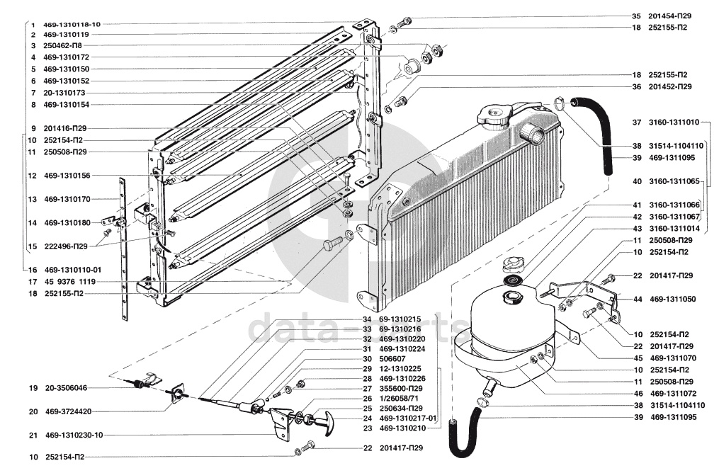 Жалюзи радиатора и привод, бачок расширительный УАЗ 31519