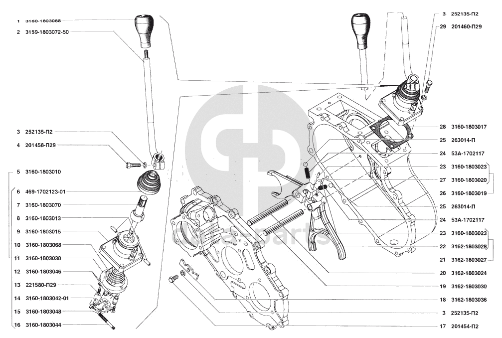 Механизм переключения передач раздаточной коробки УАЗ 31519