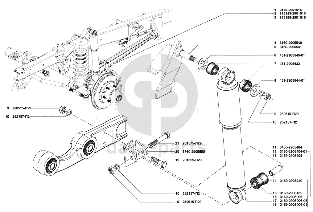 Подвеска передняя в сборе, амортизаторы передние УАЗ 31519