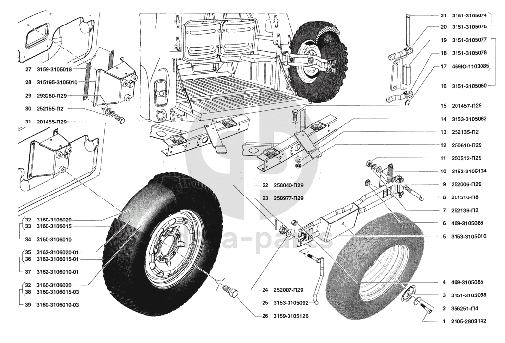 Держатель запасного колеса, покрышки и камеры УАЗ 31519