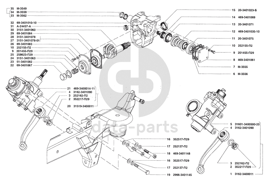 Управление рулевое в сборе, управление рулевое УАЗ 31519