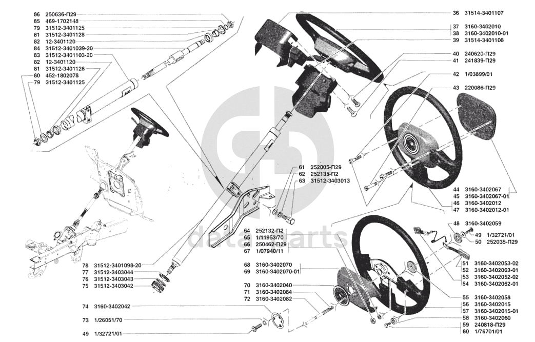Управление рулевое, колесо рулевого управления и крепление рулевого управления УАЗ 31519