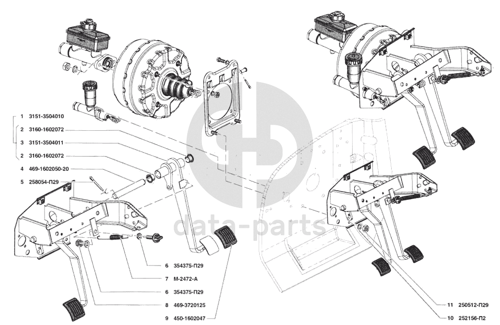 Педаль и привод механизма управления тормозами УАЗ 31519