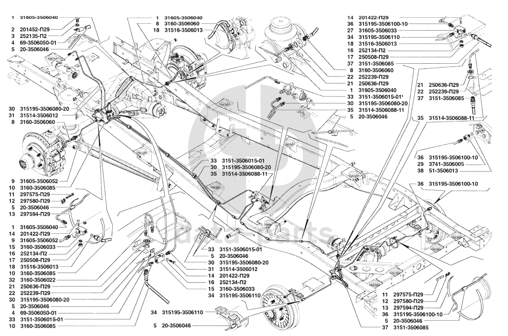 Трубопроводы гидравлических тормозов УАЗ 31519