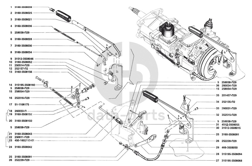 Привод механизма управления стояночным тормозом УАЗ 31519