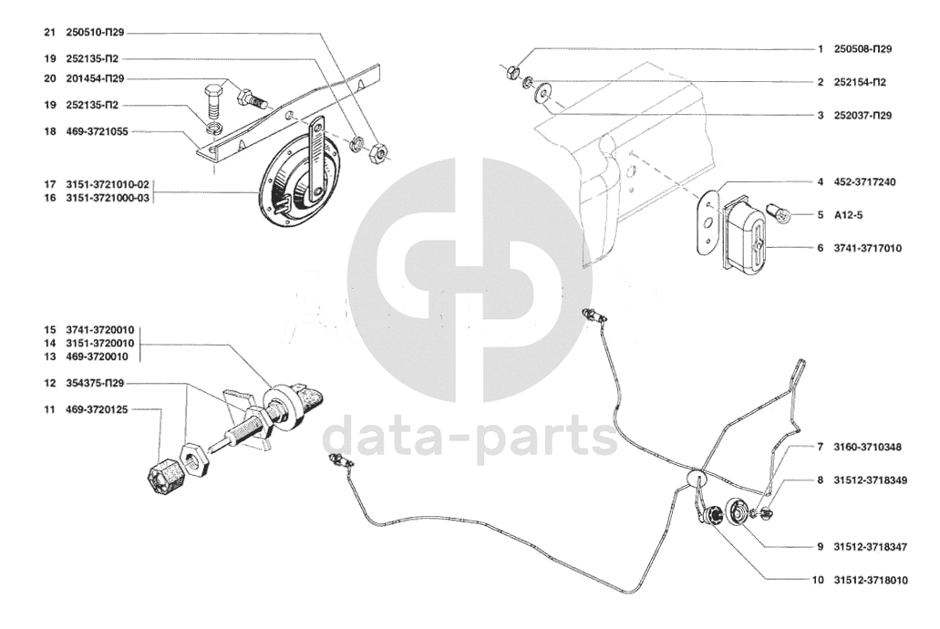 Фонарь освещения номерного знака, гидрокорректор, выключатели сигнала торможения, сигналы звуковые УАЗ 31519