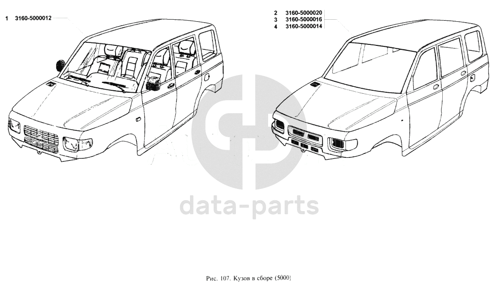 Кузов в сборе с дверями и крышкой капота, без окраски, обивки, электрооборудования, остекления, сидений, арматуры