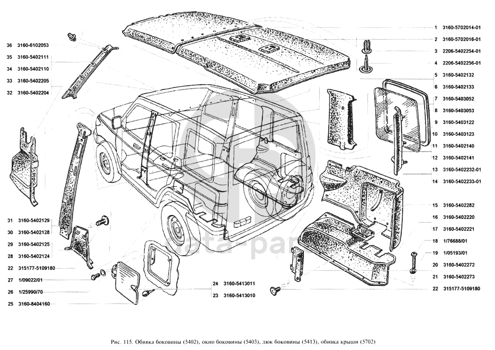 Обивка боковины, окно боковины, люк боковины УАЗ 3160