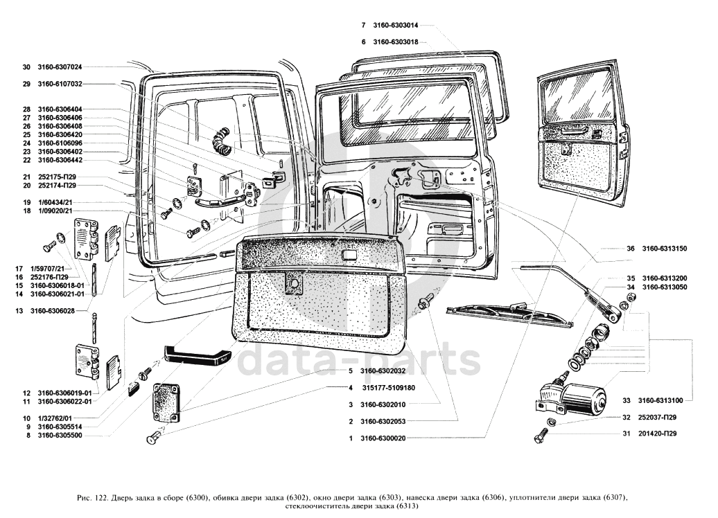 Дверь задка в сборе, обивка двери задка, окно двери задка УАЗ 3160