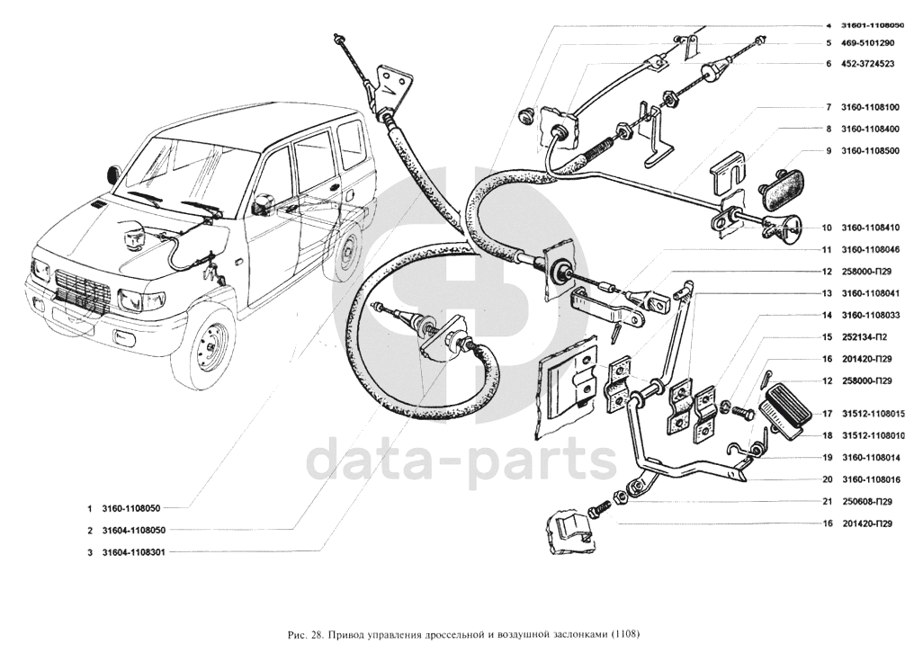 Привод управления дроссельной и воздушной заслонками УАЗ 3160