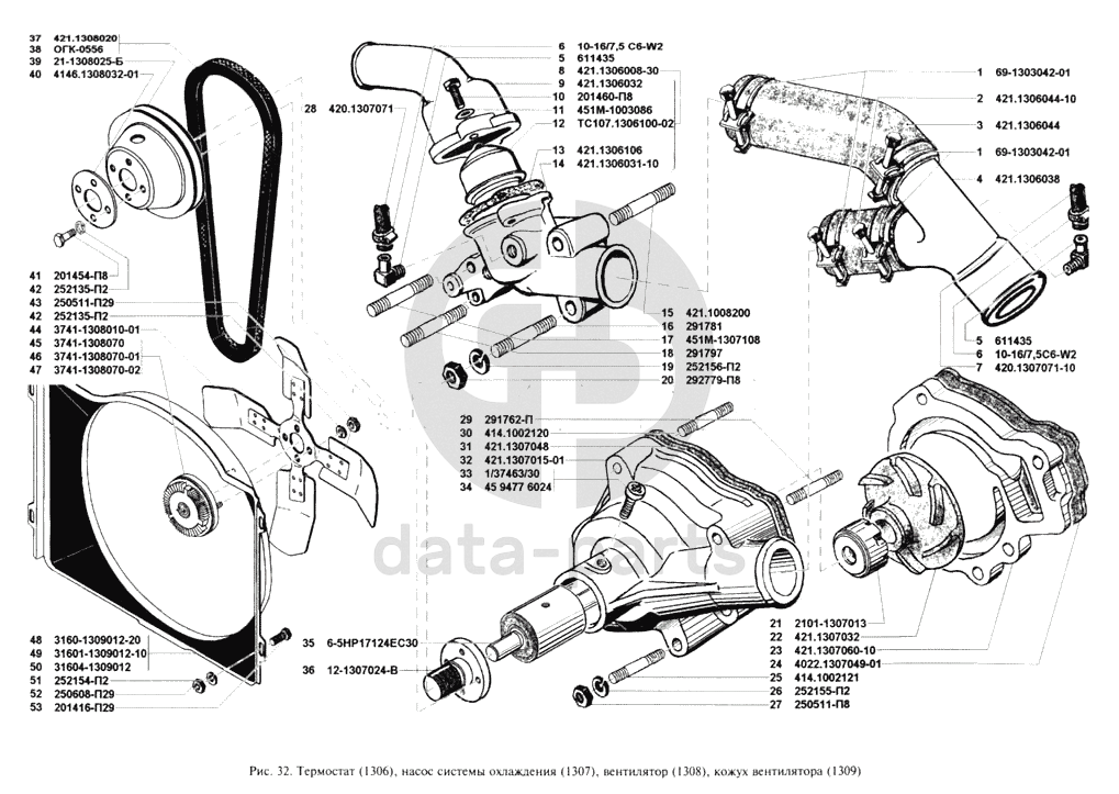 Термостат, насос системы охлаждения, вентилятор, кожух вентилятора, бачок расширительный УАЗ 3160