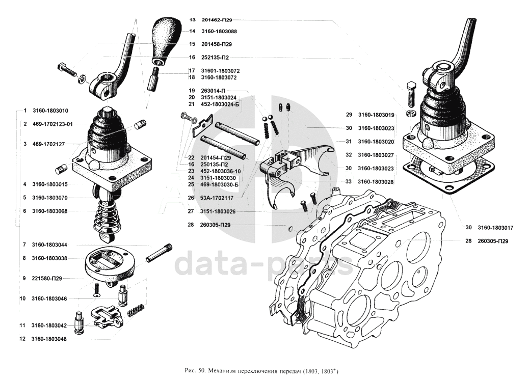 Рычаг управления переключением (при установке четырехступенчатой коробки передач)