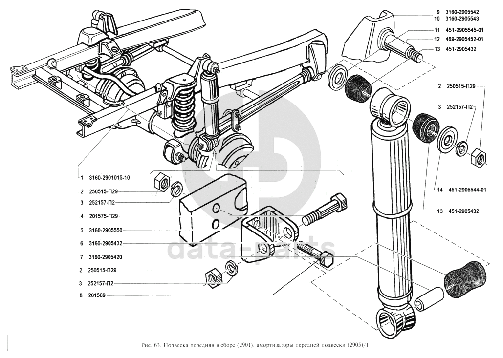 Подвеска передняя в сборе, амортизаторы передней подвески УАЗ 3160