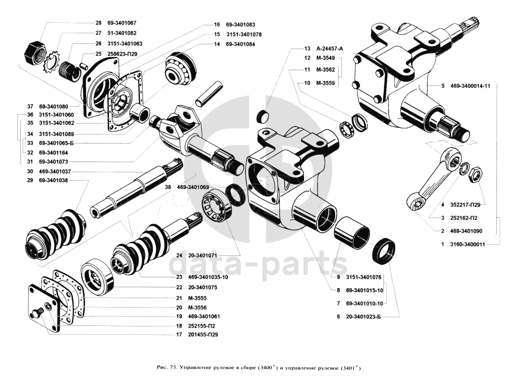 Управление рулевое без рулевого колеса, колонки и сошки в сборе