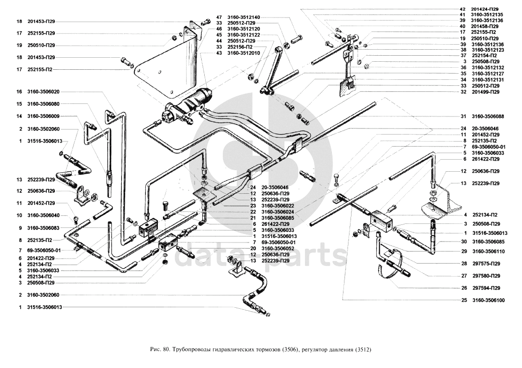 Трубопроводы гидравлических тормозов, регулятор давления УАЗ 3160