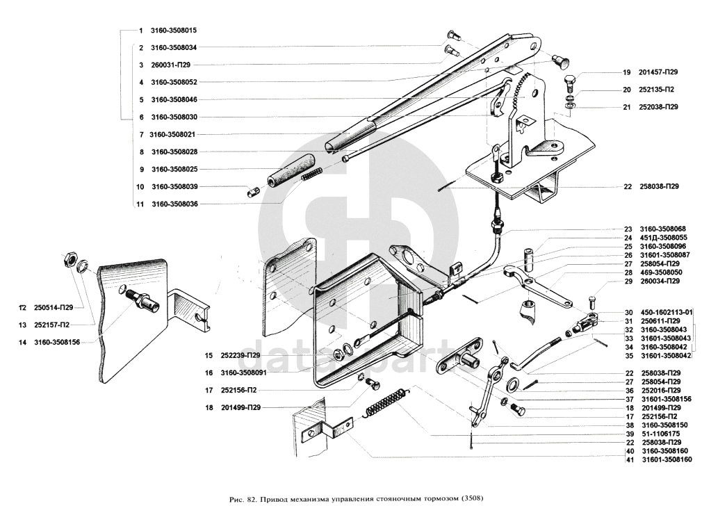 Привод механизма управления стояночным тормозом УАЗ 3160