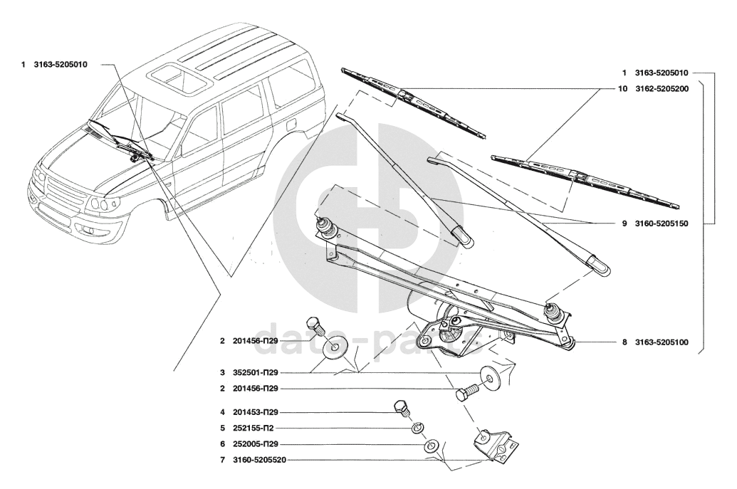 Стеклоочиститель и привод UAZ Patriot
