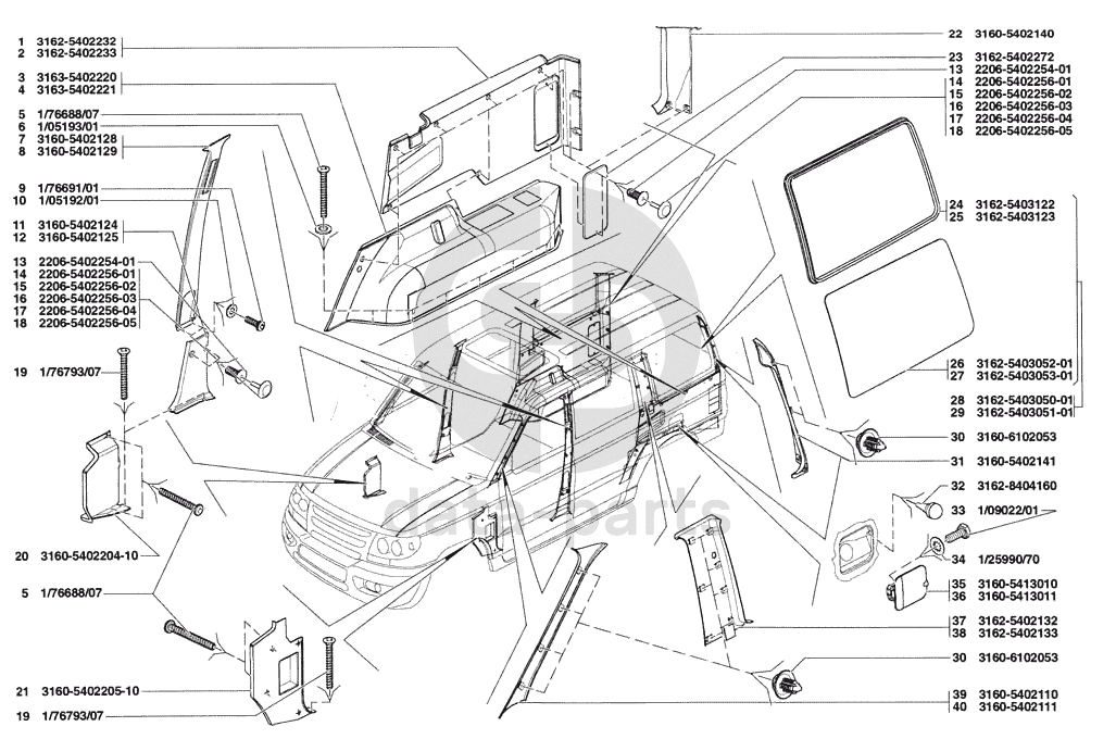 Обивка боковины, окно боковины, люк боковины UAZ Patriot