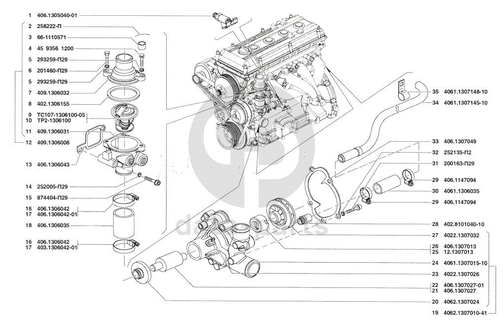 Краник сливной, термостат, насос водяной UAZ Patriot