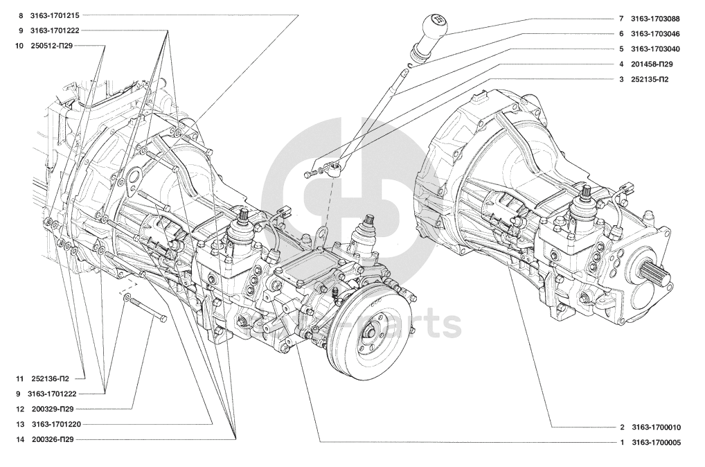 Коробка передач, коробка раздаточная и стояночный тормоз