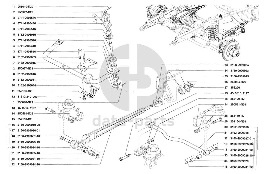 Стабилизатор поперечной устойчивости, штанги реактивные передней подвески UAZ Patriot