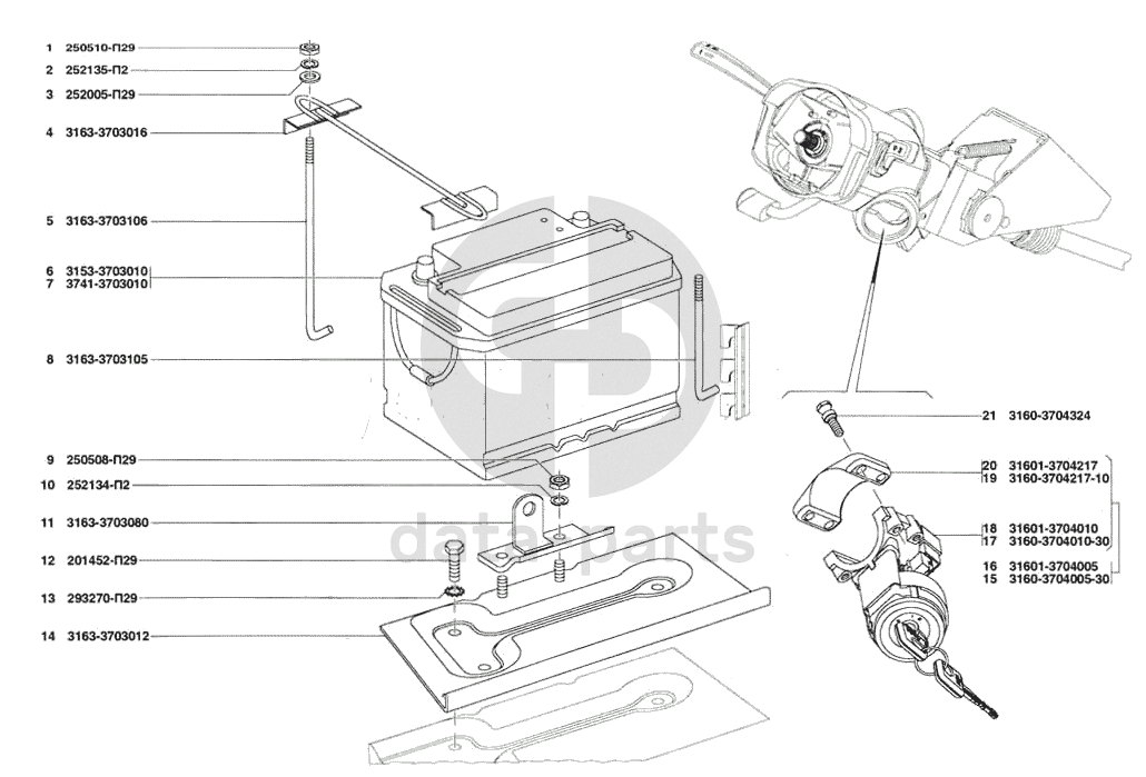 Батарея аккумуляторная, выключатель зажигания UAZ Patriot