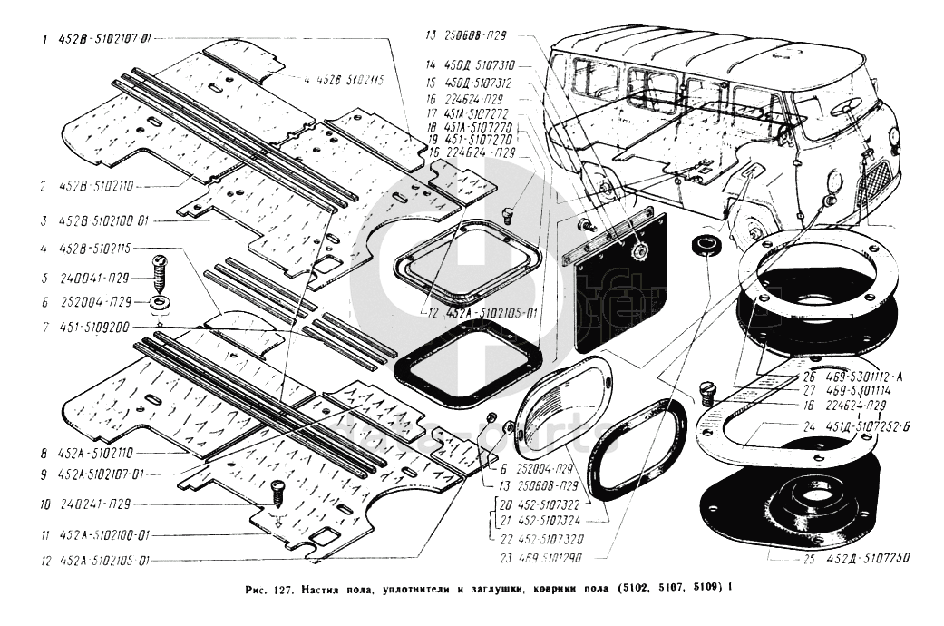 Настил пола, уплотнители и заглушки УАЗ 2206