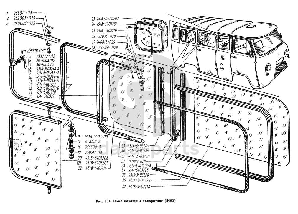 Окно боковины поворотное УАЗ 2206